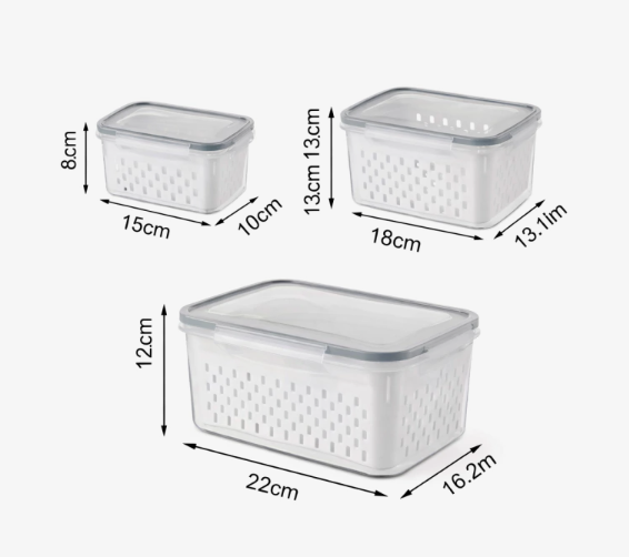 Quantas peças vêm no kit? Vêm 3 organizadores (tamanho P, M e G) — um conjunto completo para diferentes compartimentos da sua geladeira.