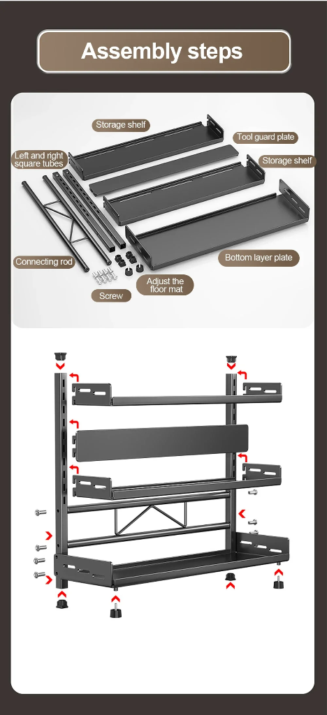Com estrutura vertical e Height 39cm, essa prateleira aproveita o espaço em altura, liberando sua bancada e facilitando o acesso aos itens mais usados. O design em 3 níveis permite visualizar todos os temperos e produtos de forma clara e organizada.