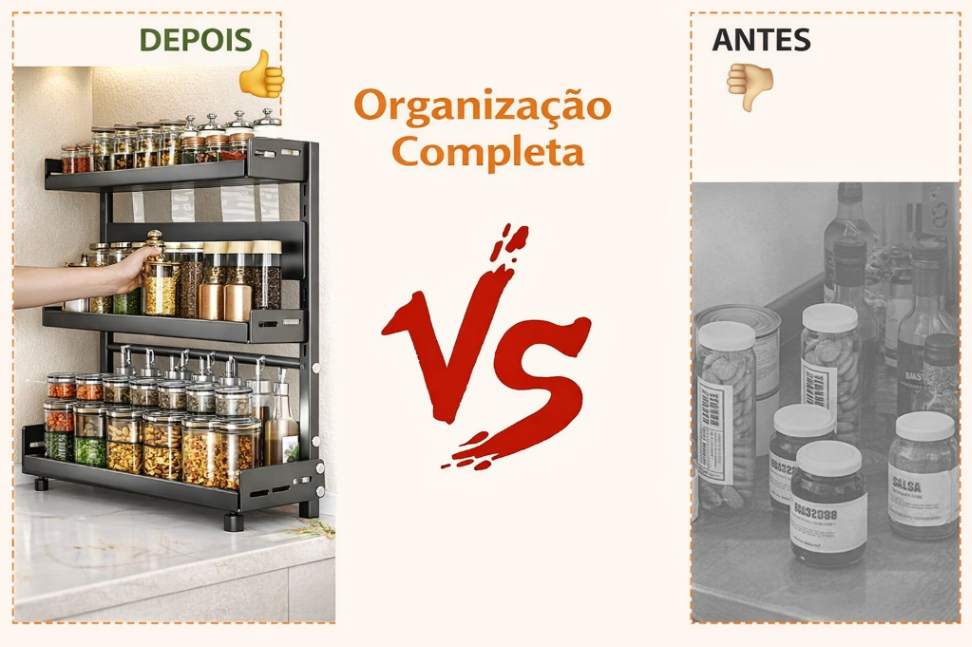 Imagine preparar suas receitas favoritas com tudo organizado e à vista. Sem abrir vários armários. Sem bagunça. Sem perda de tempo.